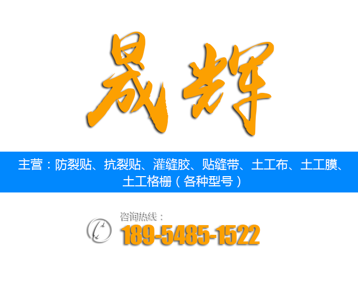 山東晟輝工程材料有限公司是專業從事土工材料、山東防裂貼生產廠家,新型復合材料生產研發的企業。公司成立以來,不斷開拓與創新,依據市場需求,積極為客戶提供新穎實用的產品。主要生產【防裂貼】、【抗裂貼】、【貼縫帶】、【瀝青灌縫膠】、【雙面貼止水帶】、【土工布】、土工格柵、土工格室、土工網墊、軟式透水管、三維植被網、鈉基膨潤土防水毯、土工膜、復合土工膜等。